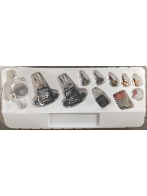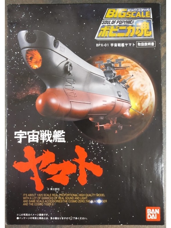 Riproduzione in metallo e plastica in scala 1/625 della corazzata spaziale Yamato. Lunghezza 35 cm circa Eccellente livello di dettaglio per questa astronave, completa di armi e di caccia Cosmo Zero, due Cosmo Tiger e due Cosmo Tiger II tutti in scala con essa. Inserendo le batterie (non incluse) si illuminano varie parti dello scafo e produce suoni come nel cartone animato, mentre con una pressione del pulsante posto sotto lo scafo fa scattare le alette laterali. I ponti centrale, di prua e di poppa sono apribili rendendo visibili i caccia, la sala missili, il meccanismo del cannone ad onde ed il motore. L'ancora è in metallo. Articolo di seconda mano. Ottime condizioni. Presente solo uno dei due pezzettini che assomigliano a "manine" del robottino bianco. Uno degli sportelli della nave ha il cardine rotto ma si può comunque aprire e chiudere. |