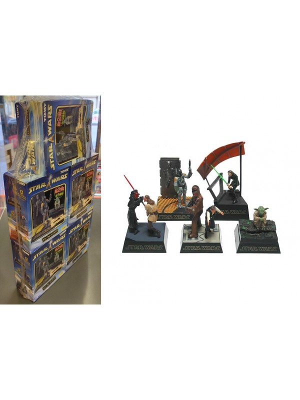 Set completo di 5 pezzi comprendente: A) Qui-Gon Jinn vs Darth Maul B) Han Solo e Chewbecca C) Yoda D) Boba Fett E) Luke Skywalker Codice EAN: 4904810642466 |