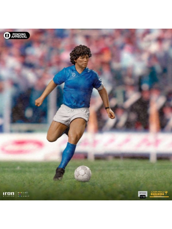 346 5844314 - Mail: info@deltacomics.it Statua in resina dedicata al grande Diego Armando Maradona! Un tributo nella classica scala 1/10 al Dio del calcio, immortalato con la maglia del Napoli, una maglia intrisa di gloria e vittoria! Non una statuetta qualsiasi, ma un'opera che è come una poesia scolpita nella resina, una poesia che racconta di dribbling magici e goal indimenticabili.