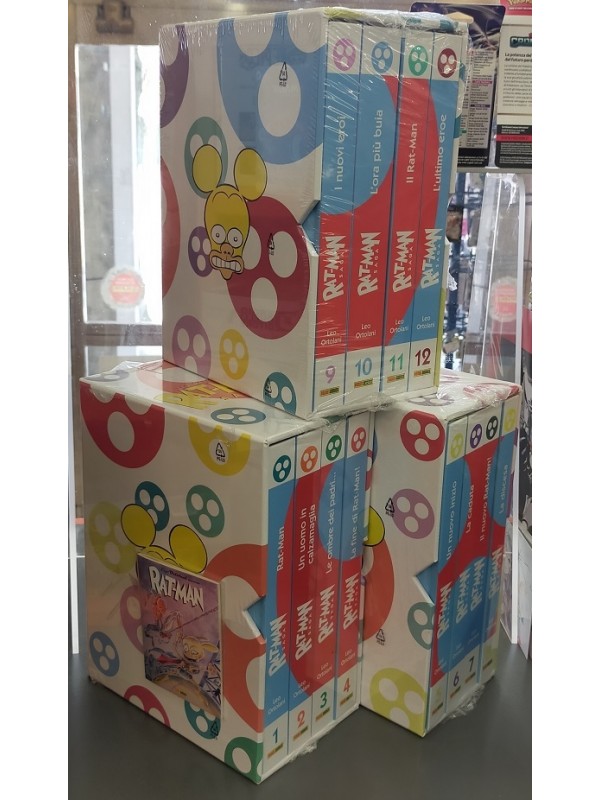 | Descrizione | Serie completa di 3 cofanetti (ancora sigillati), ognuno contenente 4 volumi cartonati. In allegato l'albetto speciale Leo Ortolani Presenta Rat-Man. |