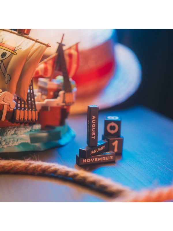 346 5844314 - Mail: info@deltacomics.it Il calendario è composto da 5 blocchi con giorni e mesi che possono essere scambiati e combinati per creare tutte le date possibili.