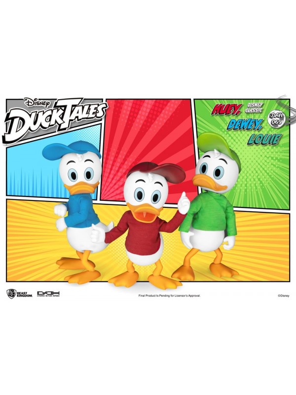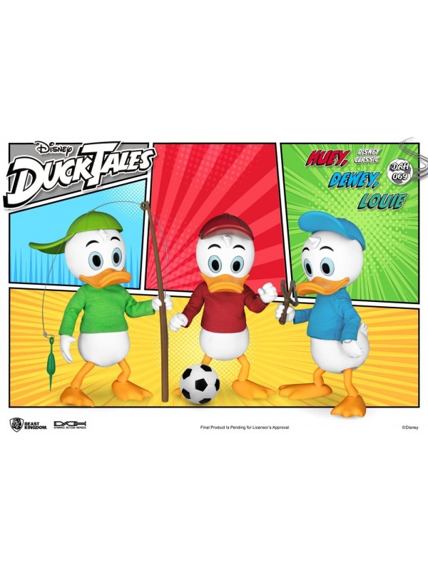 346 5844314 - Mail: info@deltacomics.it Set di 3 Action figure con abiti in stoffa di circa 12 cm ispirate al popolare cartone animato Disney Duck Tales. All'interno della confezione si trovano inoltre: